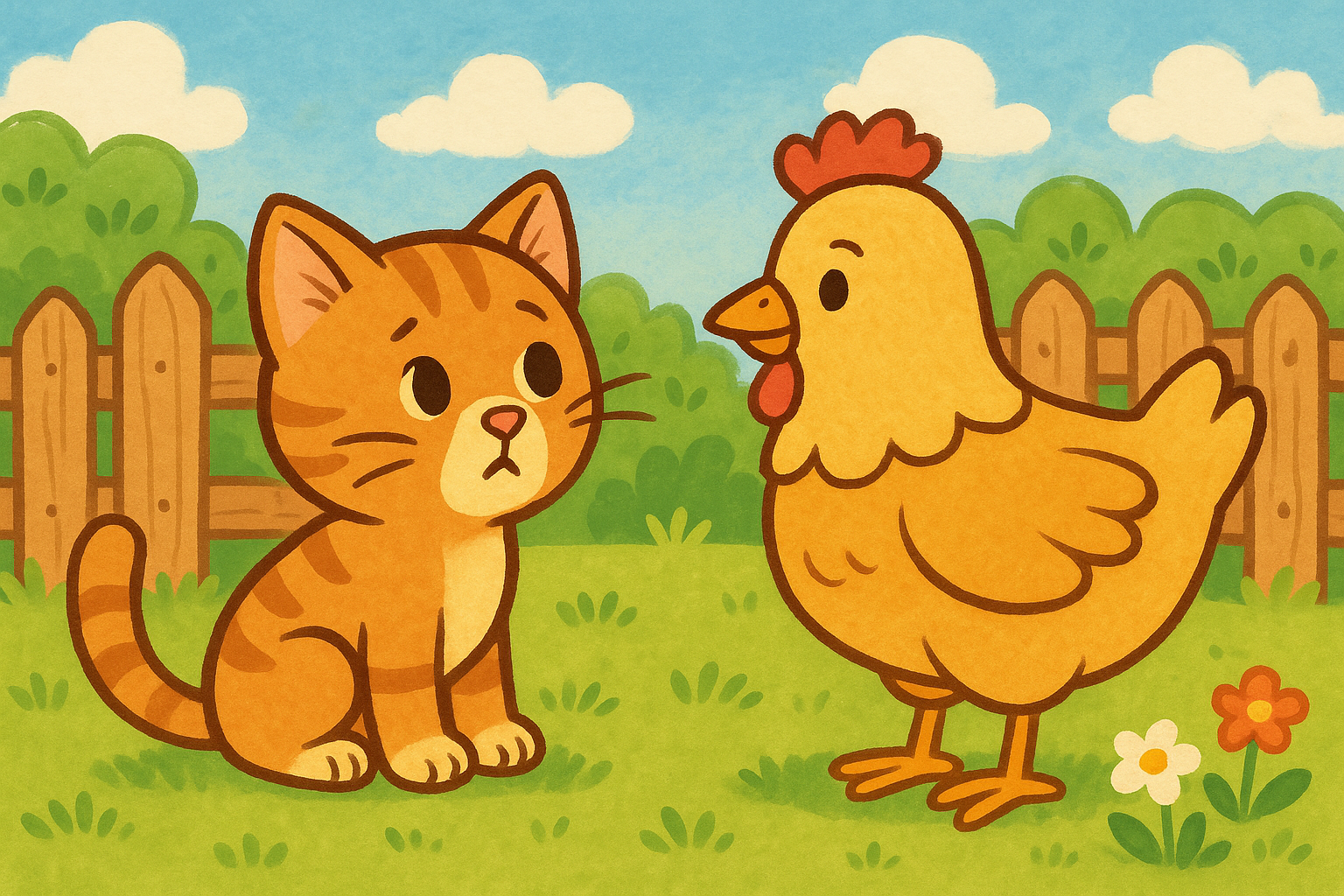 Wyszedł na podwórko. Najpierw spotkał kurkę.